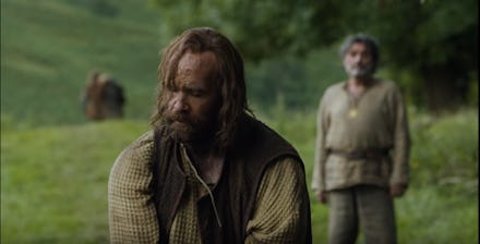 Having left his fighting days behind, we're reintroduced to the Hound as a member of a peaceful holy order led by Brother Ray (a delightful cameo by Ian McShane). Unfortunately, by the end of "The Broken Man," the Hound was fittingly left broken. Ray and the rest of his traveling companions were slaughtered — presumably by the Brotherhood Without Banners, with Ray left hanging from the would-be church they were building.