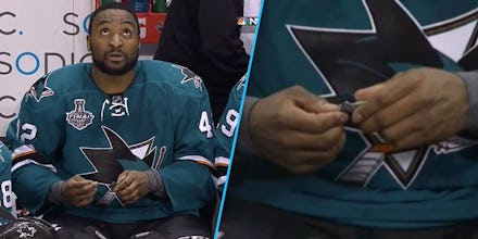 OK, maybe we all haven't been there. In fact, maybe none of us have been there except for San Jose Sharks' right winger Joel Ward, who sensibly decided to give himself a manicure on the bench after renewing hope for his team's continued life in the seven-game playoff — call it a post-score celebratory ritual.