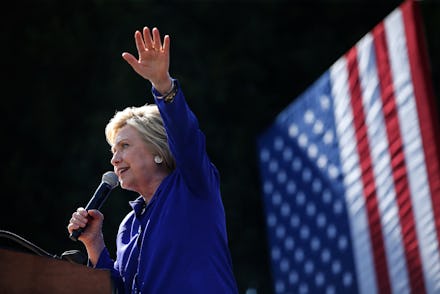 Following a campaign video placing Clinton's candidacy in the tradition of women's rights movements throughout American history, Clinton took the stage at the Brooklyn Navy Yard to Katy Perry's "Brave." — Stefan Becket