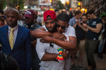 At the Stonewall Inn, a downtown Manhattan landmark where, in 1969, the gay community pushed back against police raids and brutality, hundreds gathered for a vigil where participants waved anti-NRA signs and pride flags.