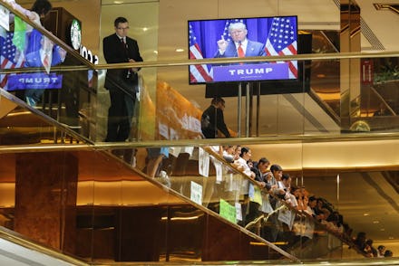 June 16, 2015: Donald Trump and his ex-model wife, Melania, glided down an escalator in his Manhattan skyscraper as Neil Young's "Keep On Rockin' in the Free World" blared through the gleaming lobby.