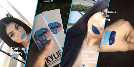 It was no different on Monday night when the 18-year-old unveiled her two new July 4 Lip Kit shades on Snapchat: a creatively-named baby blue "Skylie" and a dark navy entitled "Freedom."