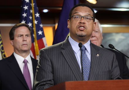 Ellison, a Democrat, took office in 2007 and became the first Muslim elected to the Congress. Since then, he's become a leading advocate on key issues like women's rights to abortion, LGBT equality and refugee resettlement. Here he is being arrested in front of the U.S. Capitol during an immigration reform protest in 2013: