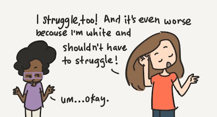 White feminism ... doesn't. It doesn't recognize that white women are more privileged than black women just because they're white and often spews nonsense about "reverse racism" — and it can get quite obnoxious.