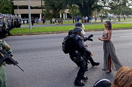 Published by Reuters and circulated widely across social media, the image depicts a black woman — who Twitter users and outlets have identified as either Leshia Evans or Ieshia L. Evans, mother to a five-year-old son (Mic was unable to independently confirm either name) — standing in defiance before a line of riot gear-clad police officers, two of whom appear to be rushing toward her.