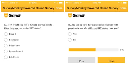 "We have observed a significant increase in user profiles openly discussing their HIV status and test dates," a Grindr spokeperson said in a statement to Mic. "Given that this has not been a part of our profile options to date, we are surveying users to determine both their desire to share this information, and ways to prevent stigma and provide proper support. Sometimes this involves asking uncomfortable questions."