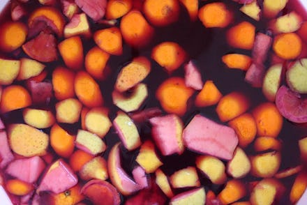 A hallmark characteristic of sangria is its chopped fruit, which absorbs the booze and makes for great bites. Wiley said it's important to stick with fruits that are seasonal for the highest quality drink. Those fruits should also be fresh, not frozen, and they should be really firm (and so, bananas are not a great sangria choice).