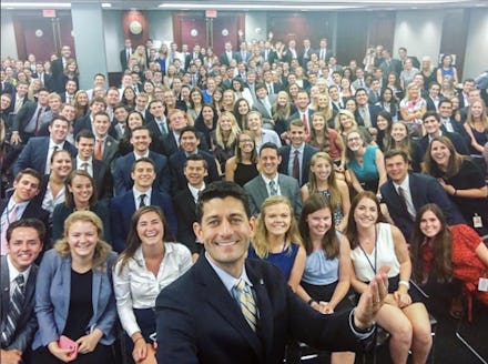"I think this sets a record for the most number of #CapitolHill interns in a single selfie. #SpeakerSelfie," Ryan captioned the photo.