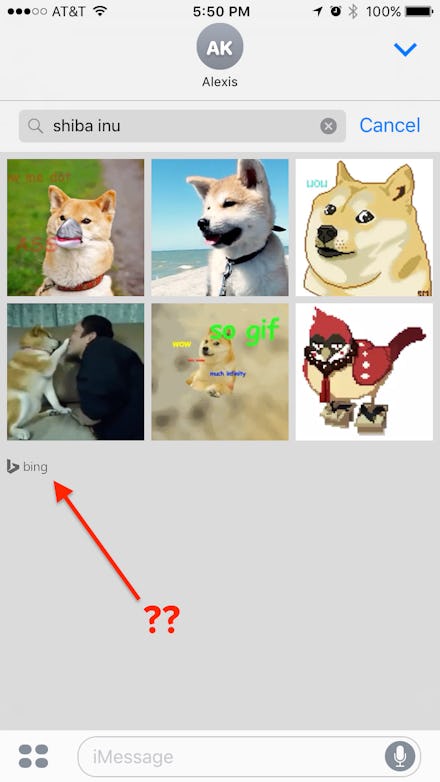It gets easy from here! Tap a GIF or search for what you want and it'll automatically appear in your message. Who knows why it uses Bing to search. Giphy and even Google Images seem to have a larger and more thorough GIF library.