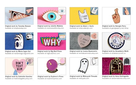 Though Lyons admitted that Urban Outfitters has had its fair share of missteps as a company, both agreed it's at least learned to give credit where credit is due. The site's main pages for men's and women's styles even features a "brands" drop-down menu with hundreds of designers and artists with whom they partner. And in the copy describing the products, like Kurtz's "Thank You" bag pin, Urban Outfitters refers to him by name, calling Kurtz one of their "favorite illustrators."