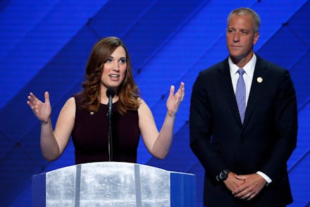 She was introduced by gay members of Congress, including Rep. Sean Patrick Maloney of New York, who in his introduction declared, "Sarah, it's about time" a transgender person spoke at the DNC.