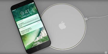 Wireless charging: Samsung just announced its Galaxy Note 7 with a lot of features Apple users covet: waterproofing, a low-light camera, an iris scanner, a larger battery and, most importantly, wireless charging. Imagine that! TechDesigns' concept video for the iPhone 7 shows a little smart connector that lets the phone juice up on a flat charger disk. The disk doubles as an external battery.
