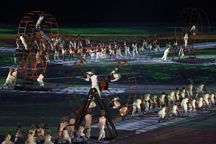 During an interpretive dance meant to convey the country's history, Brazil showed slaves being brought across the Atlantic in shackles and working on giant hamster wheels, Fusion reports. The wheels represented the sugar plantation.