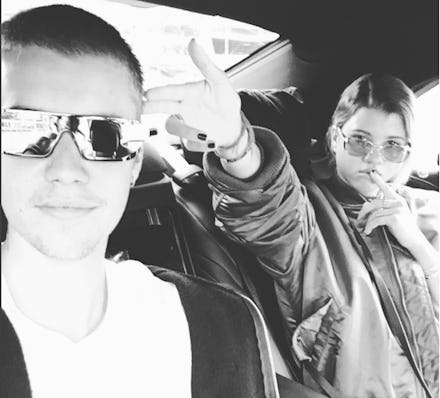 Bieber posted a series of six photos to his Instagram Saturday night, in which he and Sofia Richie — daughter of Lionel Richie — are goofing around in a car and Bieber is wearing sunglasses that make him look like a space invader.