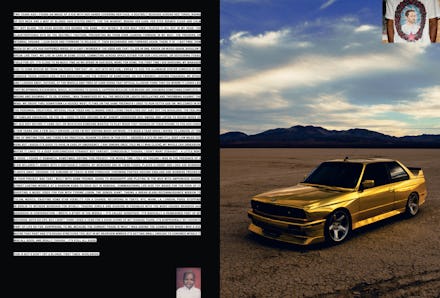 It's filled with samples of Ocean's visual inspirations: Muscle cars, fantastic landscapes, dimly lit party scenes, like those that appear in his "Nikes" video, which also dropped Saturday. It includes interviews with Lil B and Ocean's mother, a screenplay, poetry by Frank Ocean and Kanye West and a copy of the album Blonde that reportedly contains slight musical variations, one being a verse from Japanese rapper Kohh at the end of "Nikes."