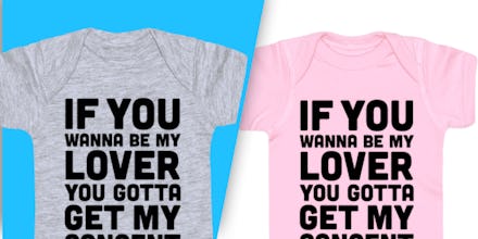 That is, until the website LookHuman.com, whose tagline is "Dress yourself to impress yourself," started selling a onesie that says, "If you wanna be my lover, you gotta get my consent" printed across the front.