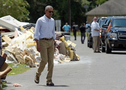 According to a White House press pool report about Obama's trip to Louisiana, the president met for nearly 25 minutes with the Sterlings and the families of the Baton Rouge officers who had been killed in an ambush nearly two weeks after Sterling's death. Obama also toured areas of Louisiana that had been badly damaged by recent floods.