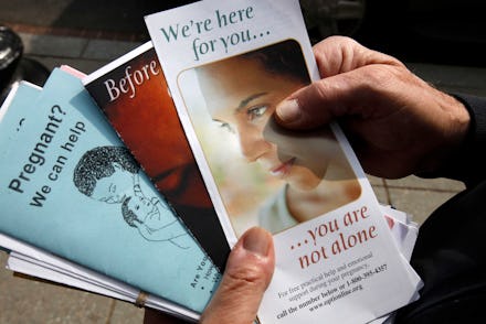 It's also worth noting that visitors to health care centers that provide abortions aren't necessarily there to receive abortions. Maybe they're going in for a pap smear and don't need an anti-abortion pamphlet. Maybe they're going in for an abortion and still don't need an anti-abortion pamphlet.