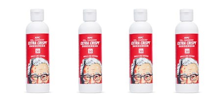 While many brands spend millions to clean up their "brand message" or even to just slightly tweak their logo, KFC shamelessly drops dollars on wacky poultry-inspired items like a fried chicken corsage (made with a real drumstick), gold plated necklaces made with actual chicken bones and a line of edible nail polish — giving a whole new meaning to "chicken fingers" in the process. The items are all cheeky and just strange enough that they become endearing. But KFC's latest non-edible creation, a bottle of fried chicken-scented sunscreen, on the other hand, is a total catastrophe.
