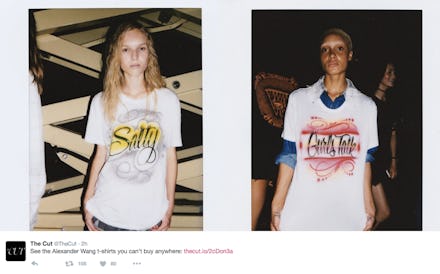 The publication tweeted out "See the Alexander Wang t-shirts you can't buy anywhere," in reference to some DIY white tees that the designer had gifted his models after his runway show Saturday night.