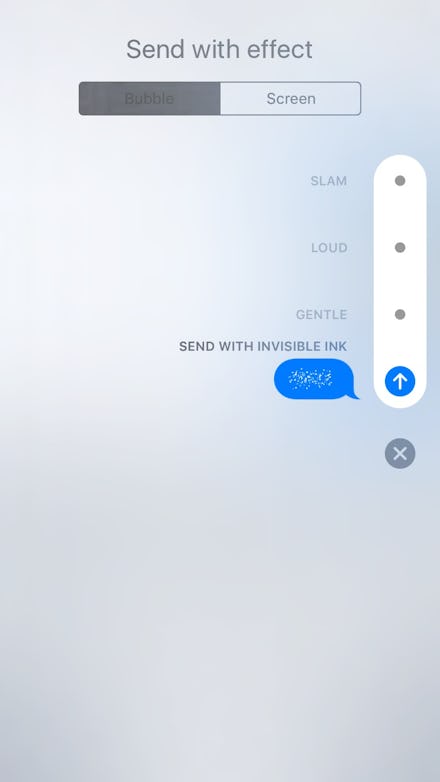 Invisible ink lets you send a "secret" text message or photo. The feature turns your message into a bunch of swirling dots — the photo or text only becomes visible if you or the recipient swipe a finger over it. After a few moments, the image or text is obscured again. People are amped about this feature for obvious reasons, like sexting.