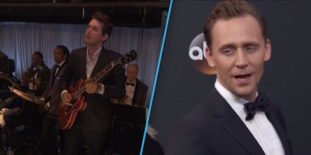 After Swift's most recent ex, Tom Hiddleston, finished presenting the award for best director and exited the Emmys' stage, the camera panned directly to Mayer, blissfully shredding his face off with the rest of the band.