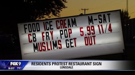 This Minnesota restaurant owner doesn't think posting a "Muslims get out" sign is racist