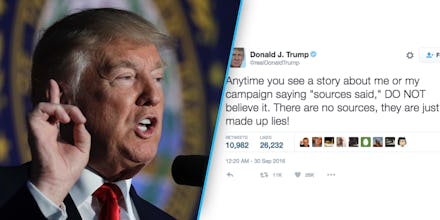 Donald Trump told his supporters not to believe any story citing anonymous "sources." Hmm.
