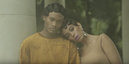 Snapshots from these visuals appeared in Solange's 112-page digital lyric and photo booklet, released Wednesday before her album drop. It offered the first glimpse of the album's invitation to sit down with Solange and her family as they celebrate their roots and discuss race relations in the United States. Both music videos, released Sunday, show Solange in spaces that feel similarly vulnerable, lying on the floor alone and with groups, dancing in wide fields and close, concrete rooms. She notably keeps eye contact with the camera nearly the entire time, creating a confrontational sort of intimacy that fits the album's songwriting.