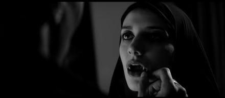 In the not-so-crowded subgenre of "Iranian Vampire Romance-Thriller," A Girl Walks Home Alone at Night is gorgeously captured in black and white, with splashes of red mostly for — you guessed it — blood. The visuals are captivating in other ways, too: The vampire's garb envelops her legs, so when she stalks her prey it looks like she's floating in the air.