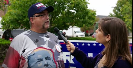 Trump has since insisted the eagle-eyed poll watchers hone in on Pennsylvania — a swing state — and so Bee sent correspondents Allana Harkin and Amy Hoggart to a Trump rally to speak with his supporter base. They were treated to exchanges like this.