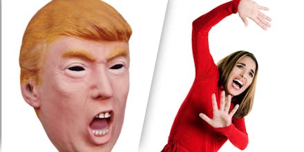 For those who don't want to bother piling on all the makeup, or who can't get the candidate's angry face down, there are myriad Trump masks available to terrify children. Rubber, cardboard, cartoonish rage or realistic orange — the possibilities are endless. Just maybe consider that police are not looking so kindly on people running around in clown masks these days,