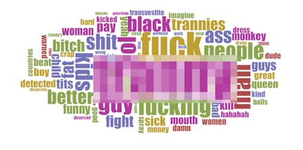The word clouds also highlighted particularly egregious comments on each platform, like this comment from a video uploaded to WSHH: