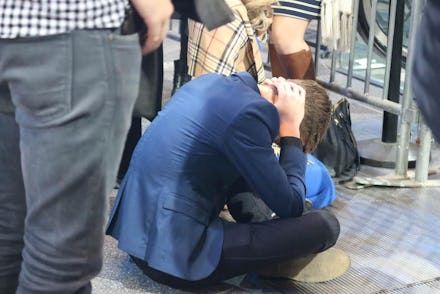 Those in the crowd struggled to grapple with the loss. A 40-something supporter named Andrew leaned against a metal railing with his forehead buried into his wrists, despondent at the night's shocking turn. Asked to describe what he was feeling, he was at a loss.