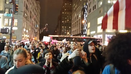 After Donald Trump shocked the nation by cruising to an unpredicted victory on Election Day, protesters took to the streets Wednesday night en masse across the United States to mount a rallying cry against his imminent presidency.