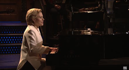 Understanding, perhaps, that it would be too soon for an Alec-Baldwin-as-Donald-Trump cold open, Saturday Night Live opted for a more cathartic start to their post-election episode: Kate McKinnon, in Hillary Clinton costume, playing Leonard Cohen's "Hallelujah" on the piano. It was a two-pronged tribute to the singer/songwriter who passed away Thursday, and to Clinton's loss of the presidency early Wednesday morning.