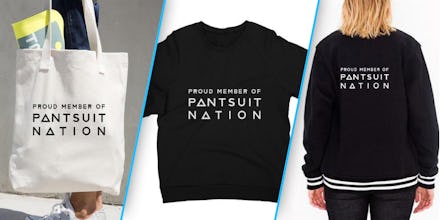 Among the items in the Outrage's Pantsuit Nation collection is a T-shirt, a coffee mug, a tote bag and even a varsity jacket all emblazoned with the words "Proud member of Pantsuit Nation."