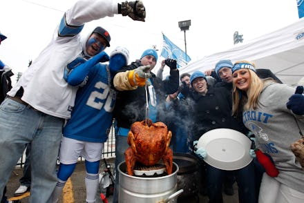 To deep fry a turkey, you'll need a completely defrosted turkey, patted dry and seasoned to your liking as well as enough peanut oil (or similar oil with a high smoke point) to fill your special turkey deep frier, the instructions for which you should read as soon as your purchase it. When frying, checking the temperature of the oil is essential for safety and taste — you'll want it at 400 degrees F and to fry your turkey for 3-4 minutes per pound. Here's a handy guide to frying that turkey, indoors and outside, without killing yourself. Keep a fire extinguisher nearby, just in case, but when you bite into that crisp, juicy and just greasy enough turkey leg, you'll know this was all worth it.
