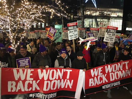 The Fight For 15 movement's national Day of Disruption started early Tuesday morning. Low-wage workers across the country are striking in what the Fight For 15 movement calls its "largest, most disruptive protest" in its 4-year history. The strikes are expected to take place in 340 cities and almost 20 of the nation's busiest airports, according to organizers from Fight For 15.