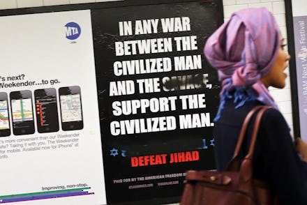 Soha Salama, who works for the Metropolitan Transportation Authority, was commuting to work on the 7 train toward Grand Central Terminal when a man began verbally assaulting her. According to Fusion, the man reportedly called Salama — who wears a hijab — a "terrorist" and said she shouldn't be allowed to work in the city. He also told Salama, who has lived in NYC for 20 years, to "go back" to her country.