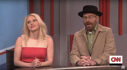 In the show's cold open, Beck Bennet, as Tapper, asks Kate McKinnon's Kellyanne Conway if Trump wasn't choosing people "specifically to undermine the very agencies they head." Then he breaks the news that Trump has just appointed the Breaking Bad anti-hero, played by Bryan Cranston, to lead the charge on enforcing the country's drug laws.