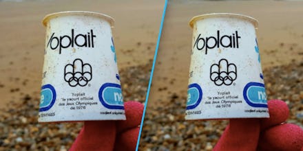 A yogurt cup that's older than the sum of Kylie Jenner and Jaden Smith's ages just turned up on a beach in Canada. On Nov. 25, a man named Rob Gordon tweeted a photo of a Yoplait container that appears to be from 1976.
