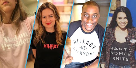 An evolving industry: Of course, none of these people would be wearing these T-shirts if not for the massive Hillary Clinton swag industry that was birthed within the past year. While Donald Trump's supporters donned their signature "Make America Great Again" caps, Clinton supporters had access to a plethora of timely, cheeky merch, from Nasty Woman hats to images of a younger, stylish Clinton printed on T-shirts.
