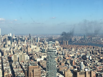 A tweet from New York City's official emergency notification system urged nearby residents to close windows to avoid smoke and to expect traffic delays in the area surrounding the fire.