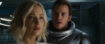 In addition to Rogue One and Assassin's Creed, Passengers is another giant blockbuster arriving this holiday season. The sci-fi film — hitting theaters nationwide on Dec. 21 — stars Oscar winner Jennifer Lawrence and Guardians of the Galaxy heartthrob Chris Pratt as romantic interests who meet aboard a spaceship called the Starship Avalon.