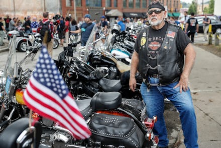 Bikers for Trump founder Chris Cox — a sculpture artist formerly known as "Lawn Mower Man" — has a history of motorcycle-mounted conservative activism. Cox famously, after driving to D.C. from South Carolina, spent the 2013 government shutdown single-handedly patroling war memorials, picking up trash and maintaining the lawn around the Lincoln Memorial.