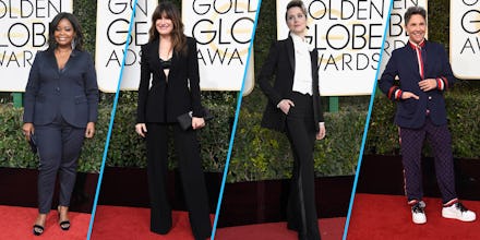 Blame it on Hillary Clinton, but to the 2017 Golden Globes on Sunday night, many women felt compelled to ditch the typical dress, and opt for the simple and timeless suit.