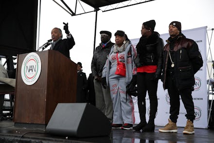 "We are not fair-weather activists. We march in the rain, in the ice, in the cold," Sharpton said to a crowd of marchers gathered at the base of the Washington Monument. "We are not Trump Tower folks. We are down-on-the-ground activists."