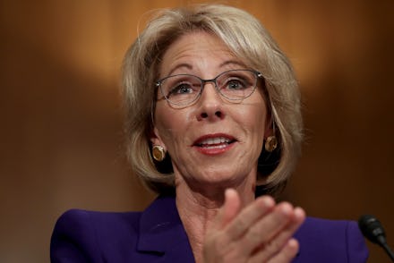 DeVos said she believed regulation of firearms in educational institutions should be left to states and localities. Connecticut Sen. Chris Murphy, whose state saw the horrific Sandy Hook school massacre in 2012, pressed DeVos on whether she "can't say definitively today that guns shouldn't be in schools."