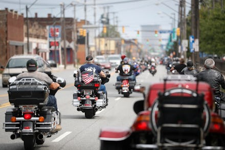 One common image circulating Twitter is of a group of bikers with an American flag in the backdrop, which is actually a Rolling Thunder stock photo from May 2009 taken at the annual Rolling Thunder rally, Ride For Freedom, in Washington D.C.